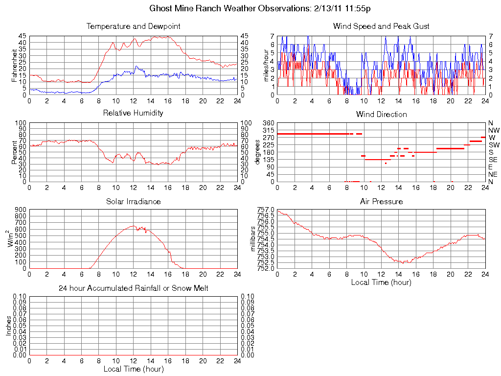 Temperature (F) 23.6 9.4 @ 04:20 44.5 @ 15:00 26.1