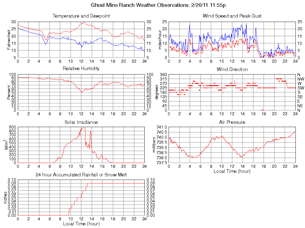 Temperature (F) 16.8 16.8 @ 23:55 29.9 @ 12:30 23.4