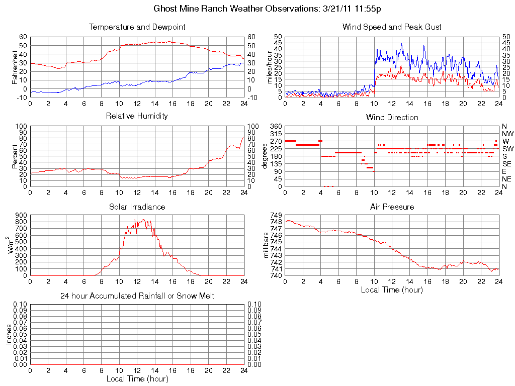 Temperature (F) 34.8 23.4 @ 03:05 54.7 @ 15:35 41.4
