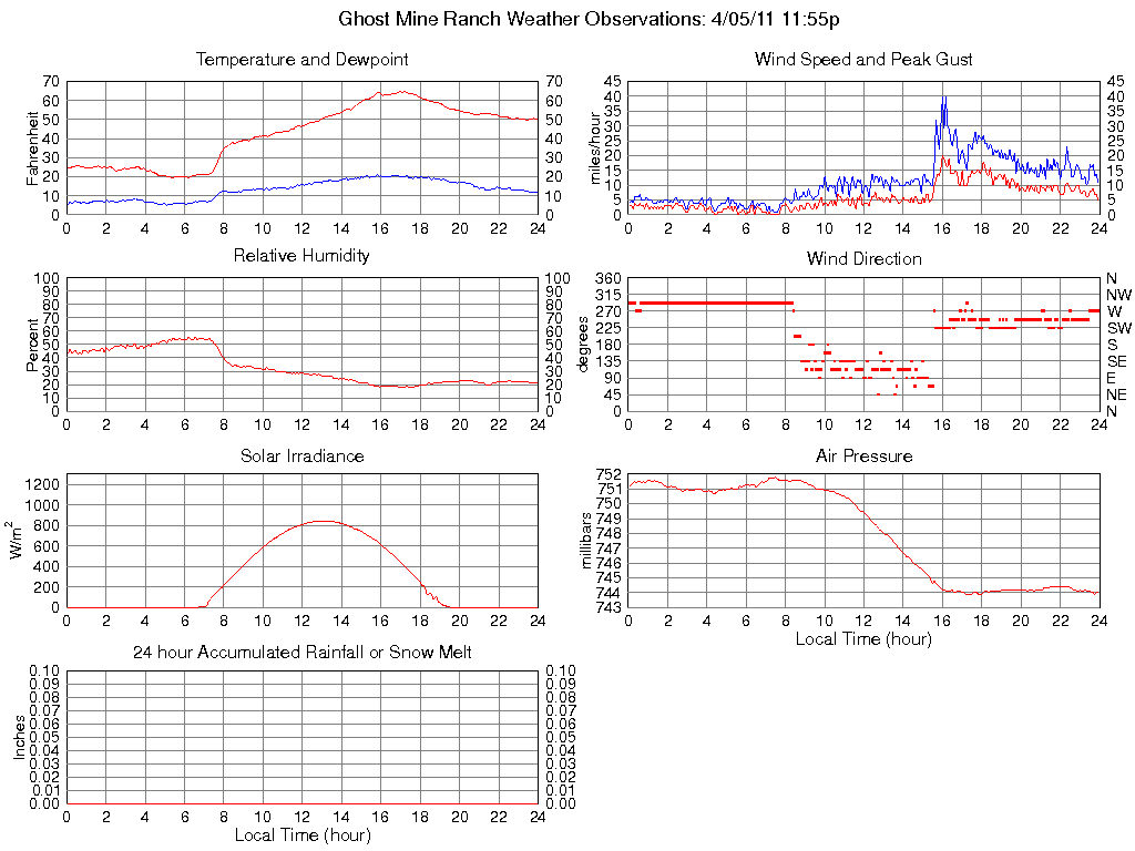 Temperature (F) 50.2 19.6 @ 05:25 64.7 @ 17:00 42.6