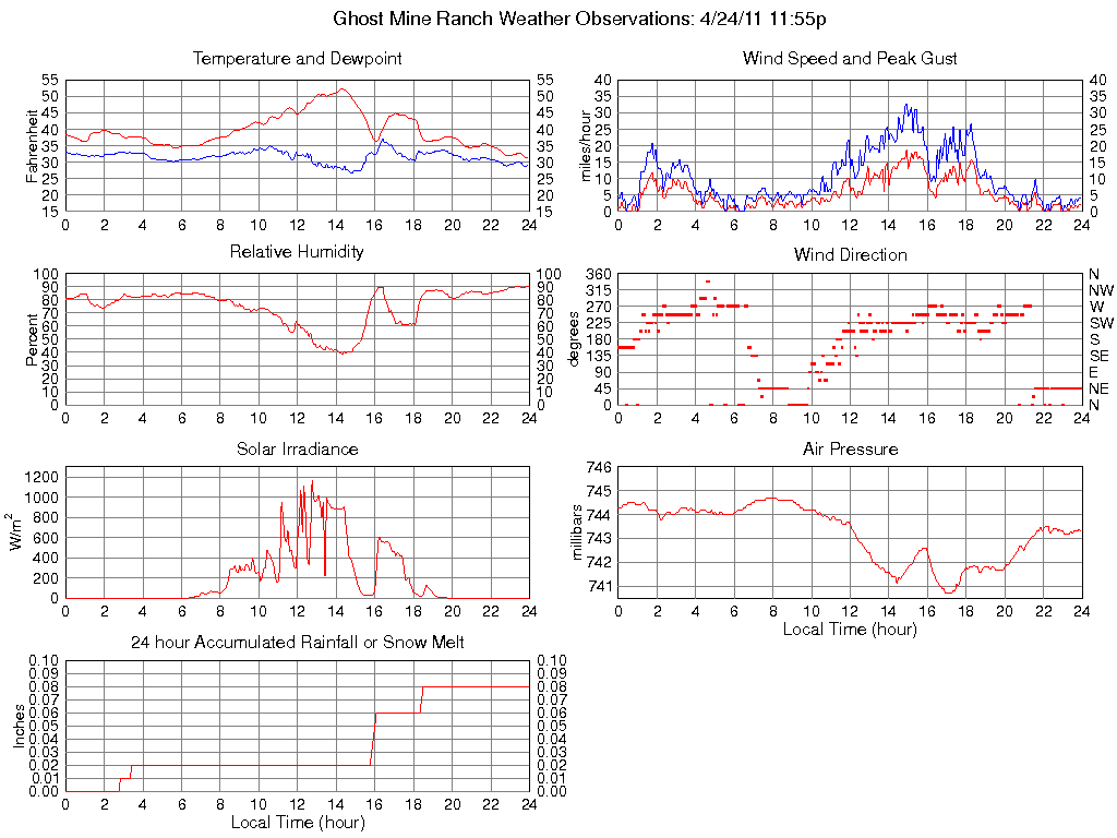Dewpoint (F) 29.0 26.6 @ 14:50 37.3 @ 16:25 31.7