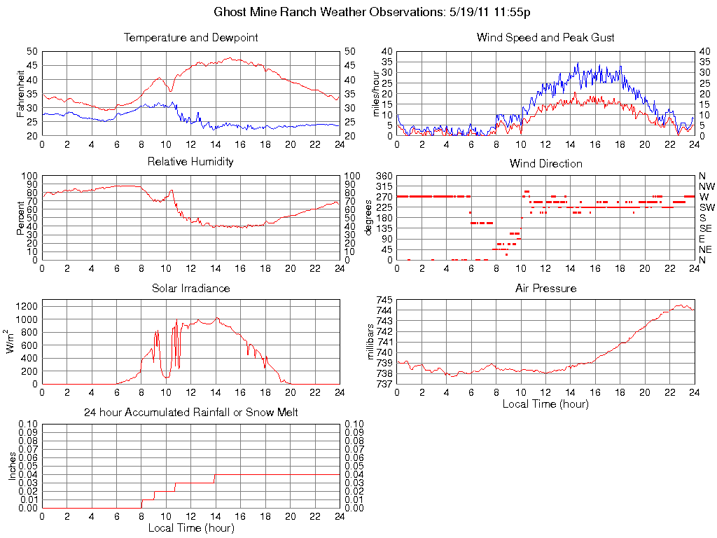 Temperature (F) 34.0 29.0 @ 05:05 47.8 @ 15:05 38.1