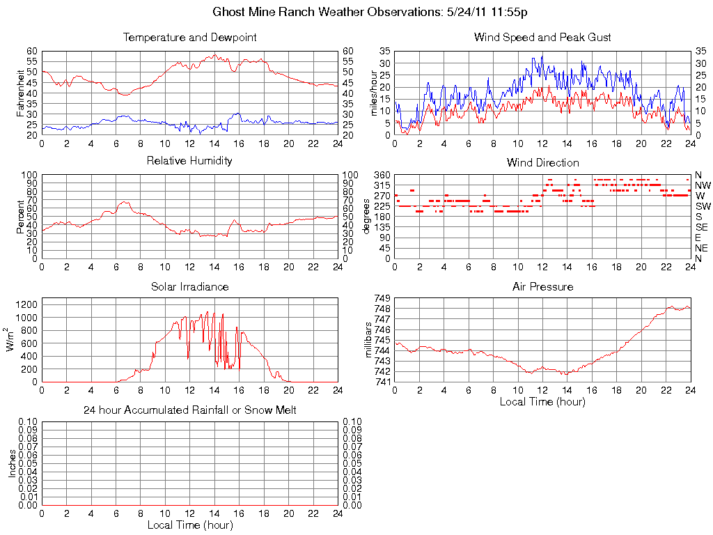 Solar Flux (W/m2) 0 0 @ 00:05 1098 @ 13:25 281