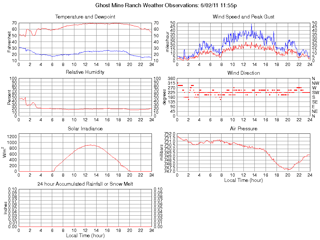 Temperature (F) 54.9 48.2 @ 01:10 69.7 @ 13:20 63.5