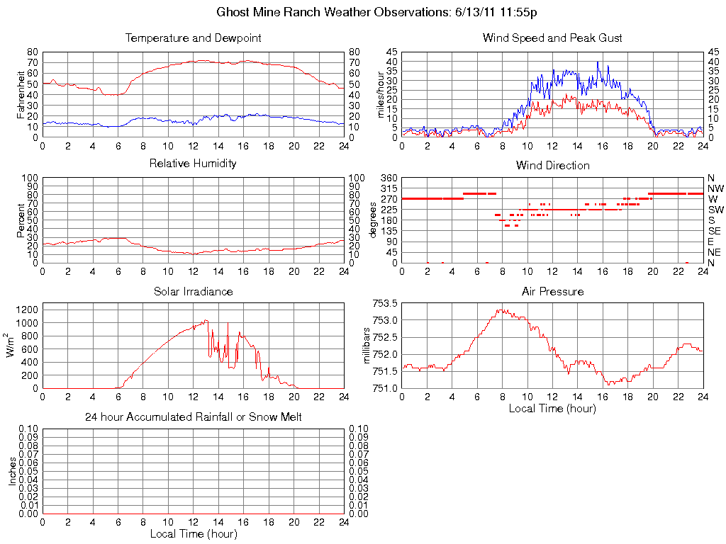 Temperature (F) 46.3 39.7 @ 05:25 72.4 @ 13:05 59.2