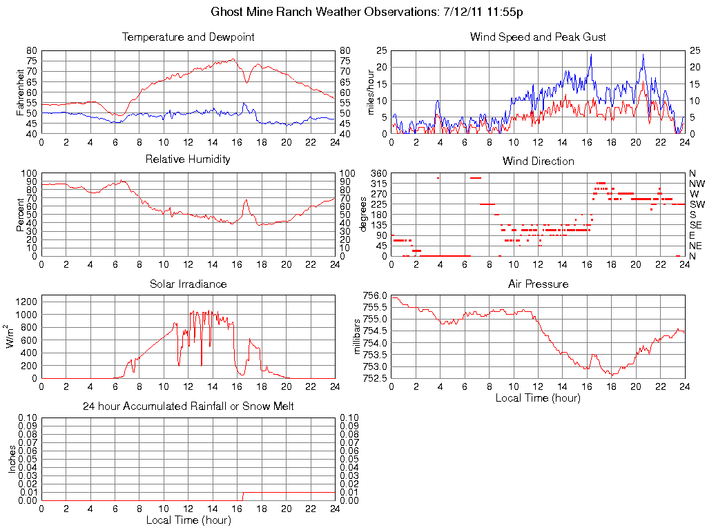 Temperature (F) 57.1 48.7 @ 06:25 76.1 @ 15:40 63.1