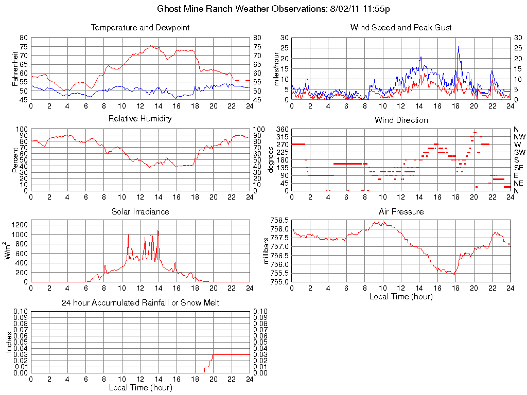 Temperature (F) 56.0 50.3 @ 03:40 75.9 @ 13:10 62.3