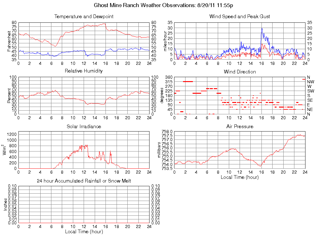 Dewpoint (F) 46.4 38.6 @ 12:40 50.4 @ 22:25 44.2