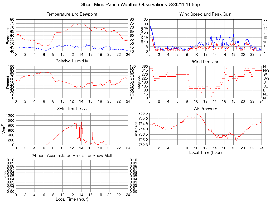 Temperature (F) 53.7 46.5 @ 06:40 75.9 @ 14:20 61.7