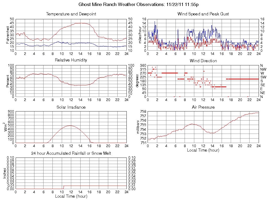 Temperature (F) 25.7 22.2 @ 21:55 45.1 @ 14:10 31.4