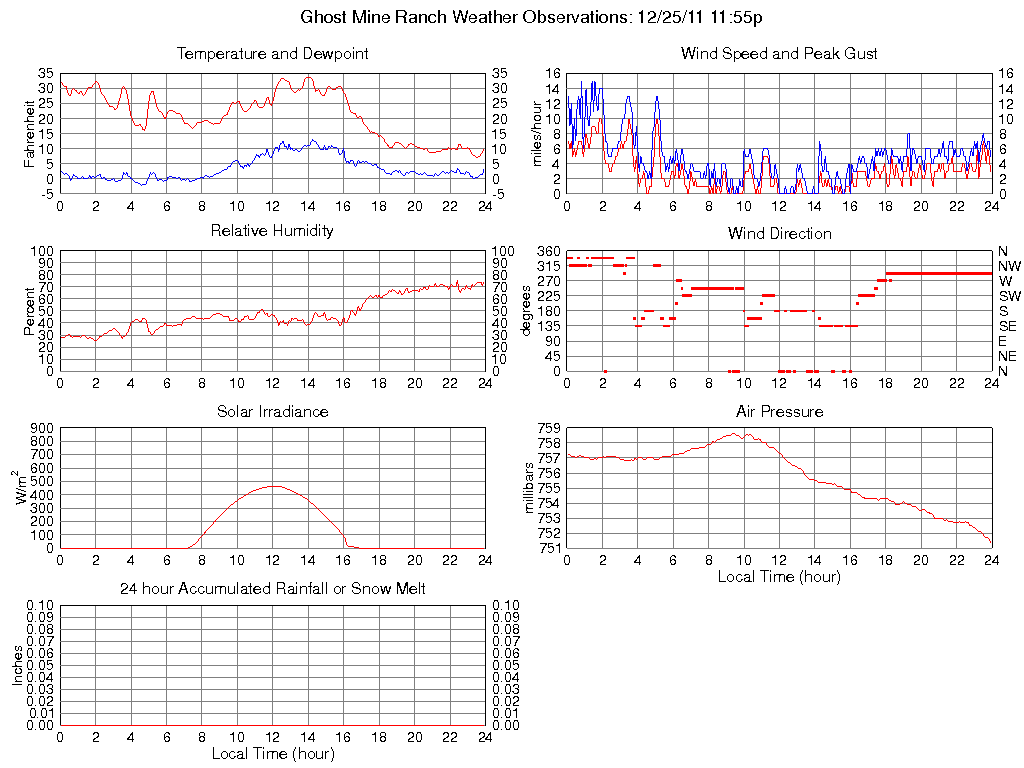 Temperature (F) 9.8 7.2 @ 23:30 33.9 @ 13:55 21.2