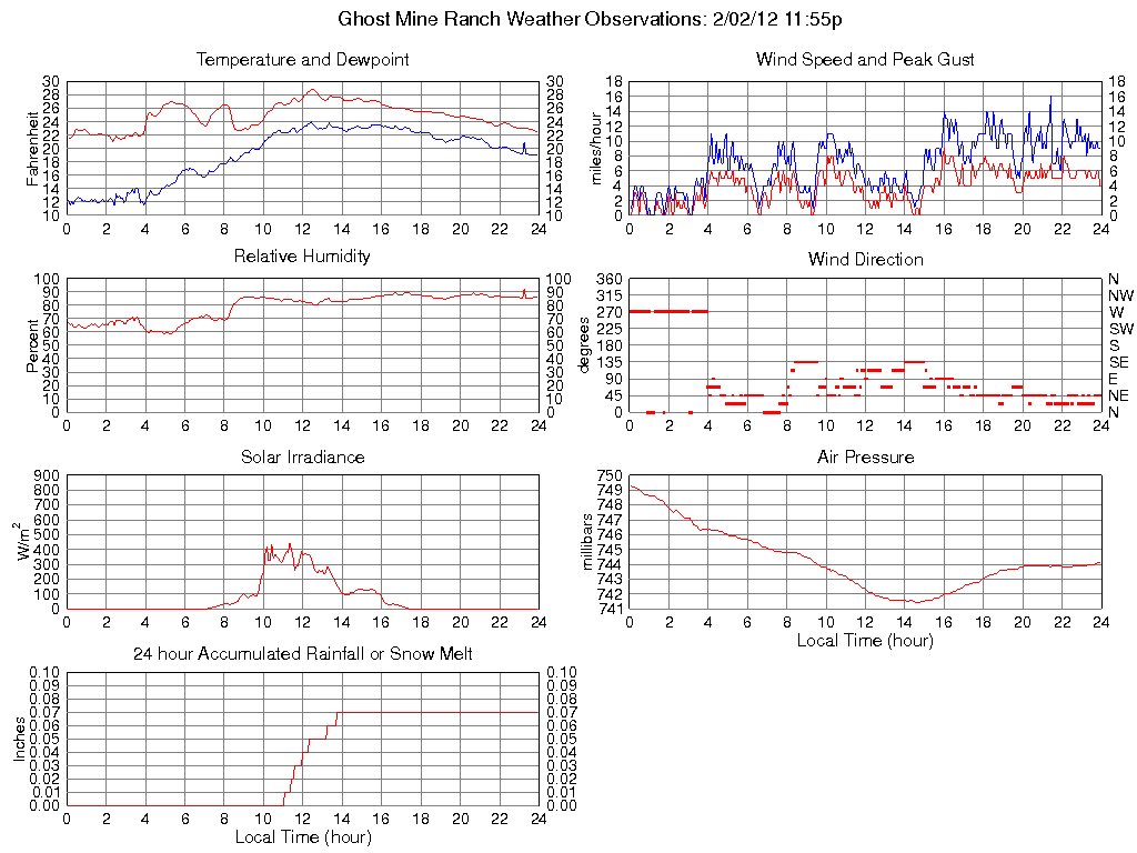 Temperature (F) 22.6 21.1 @ 02:20 28.8 @ 12:25 24.9