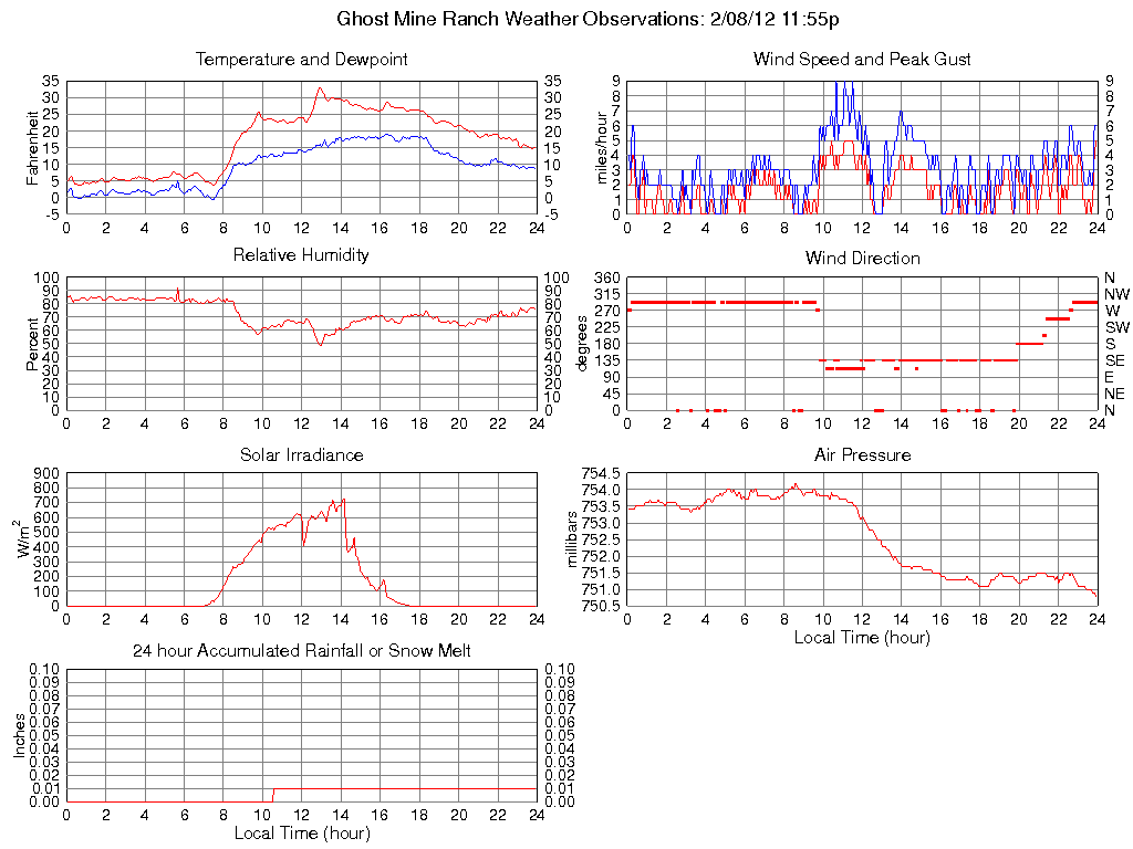 Temperature (F) 14.9 3.7 @ 00:45 33.2 @ 12:55 17.2
