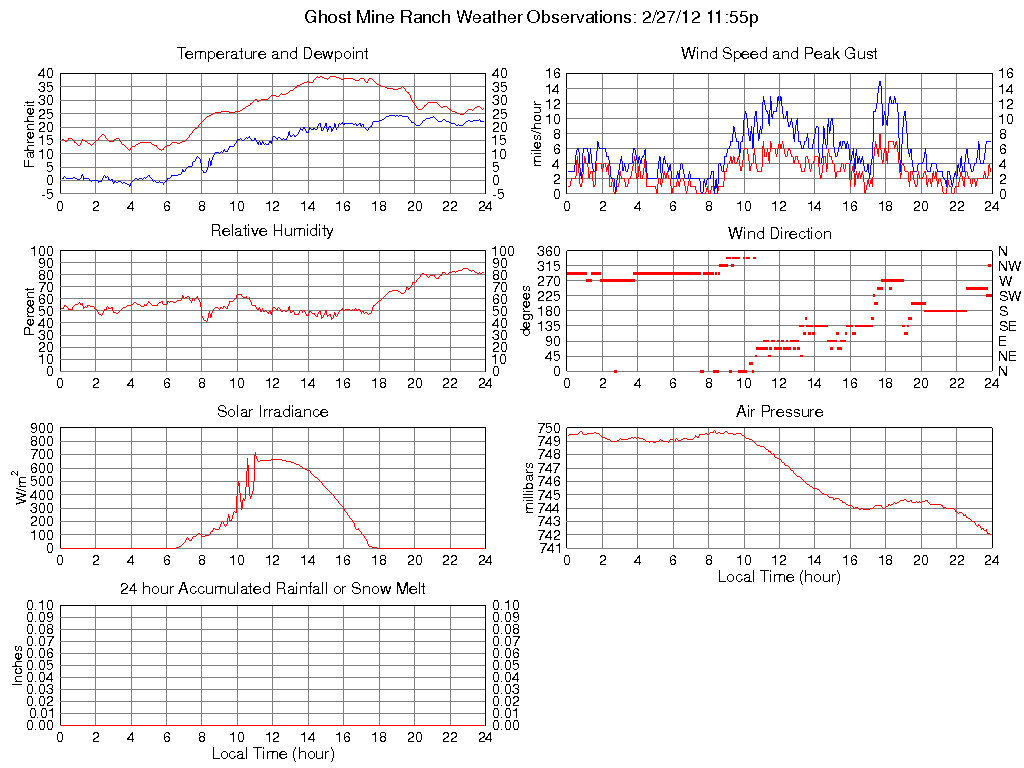 Temperature (F) 27.2 11.3 @ 03:55 39.0 @ 15:25 25.8