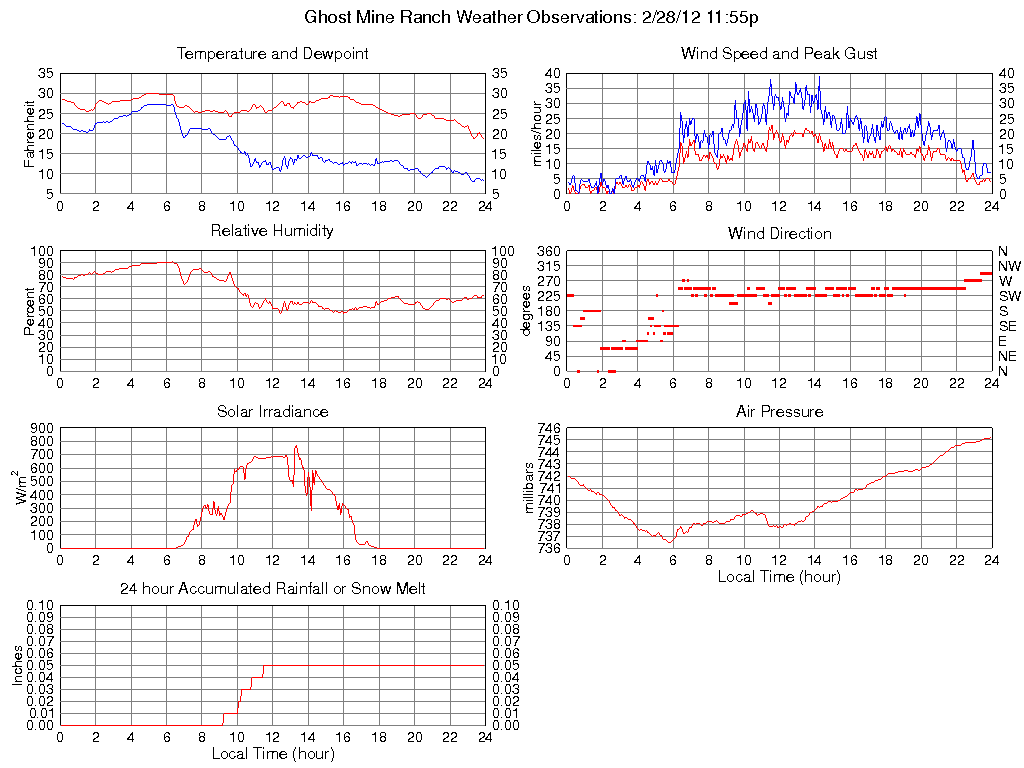 Temperature (F) 18.9 18.9 @ 23:20 30.1 @ 05:05 26.4