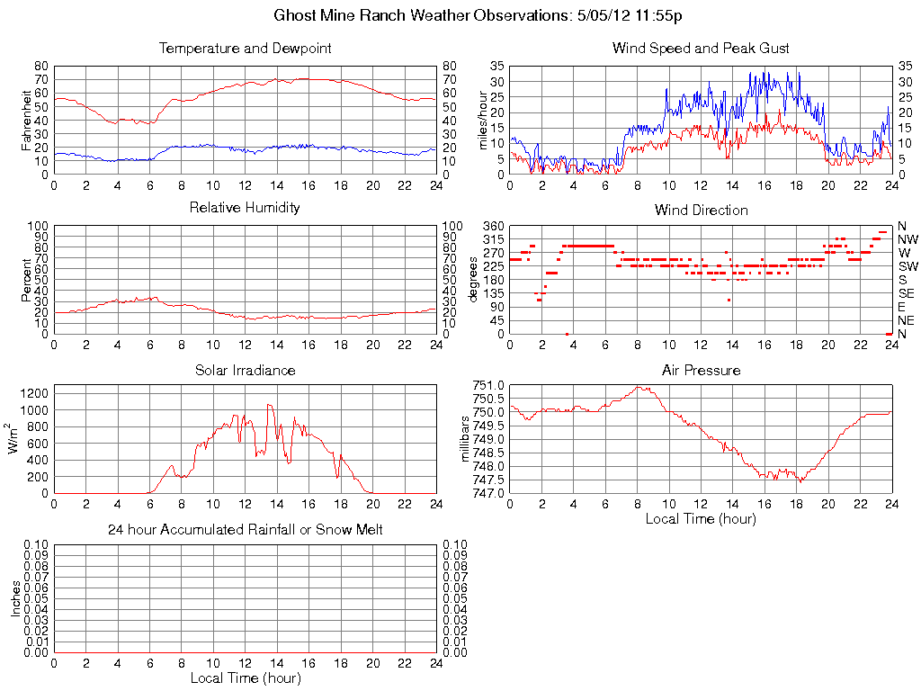 Solar Flux (W/m2) 0 0 @ 00:05 1067 @ 13:25 300