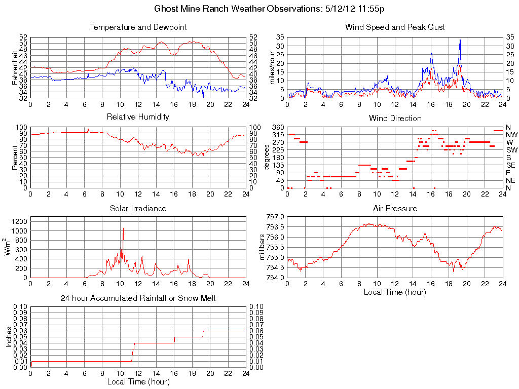 Dewpoint (F) 35.5 32.2 @ 19:15 41.8 @ 11:05 37.8