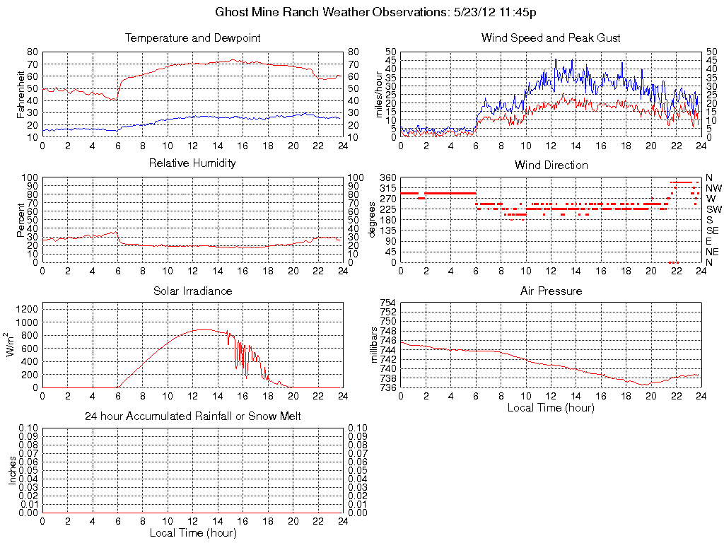 Solar Flux (W/m2) 0 0 @ 23:50 885 @ 12:45 294