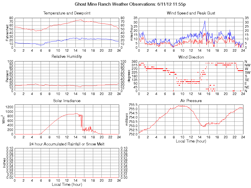 Temperature (F) 51.1 44.1 @ 04:55 75.4 @ 15:15 60.5