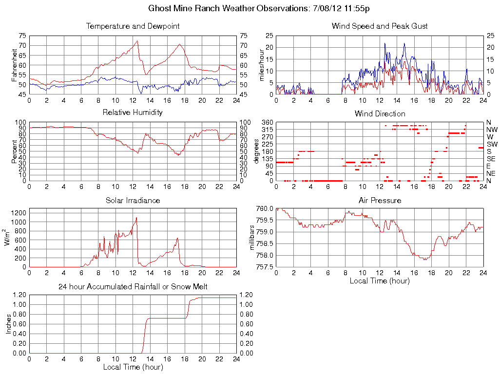 Temperature (F) 57.7 49.5 @ 01:55 72.5 @ 12:30 58.6