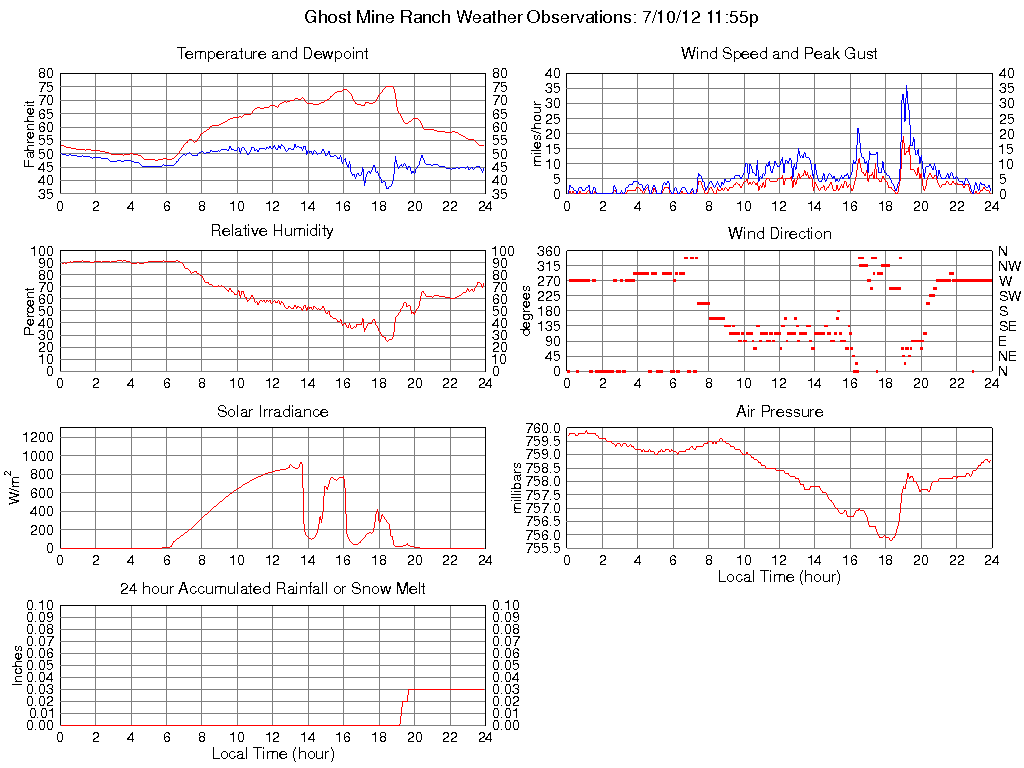 Dewpoint (F) 44.7 36.9 @ 18:25 53.6 @ 12:30 47.7