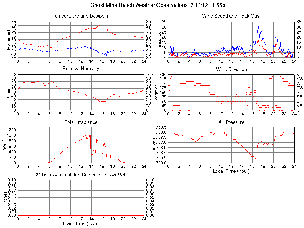 Solar Flux (W/m2) 0 0 @ 00:05 1076 @ 13:45 270