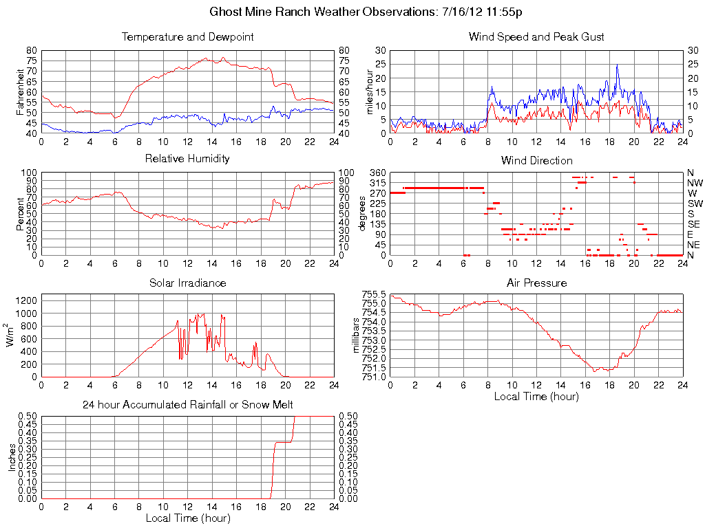 Temperature (F) 54.4 47.5 @ 06:00 76.7 @ 14:55 62.4