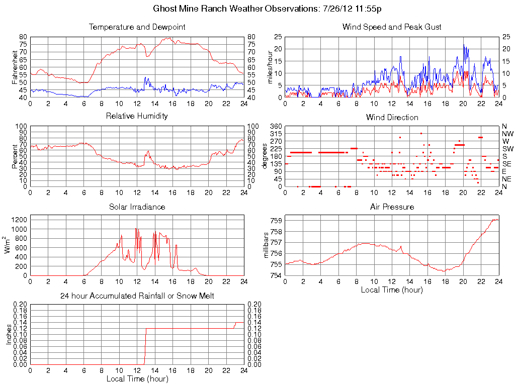 Temperature (F) 56.3 49.4 @ 05:35 79.4 @ 15:40 65.2