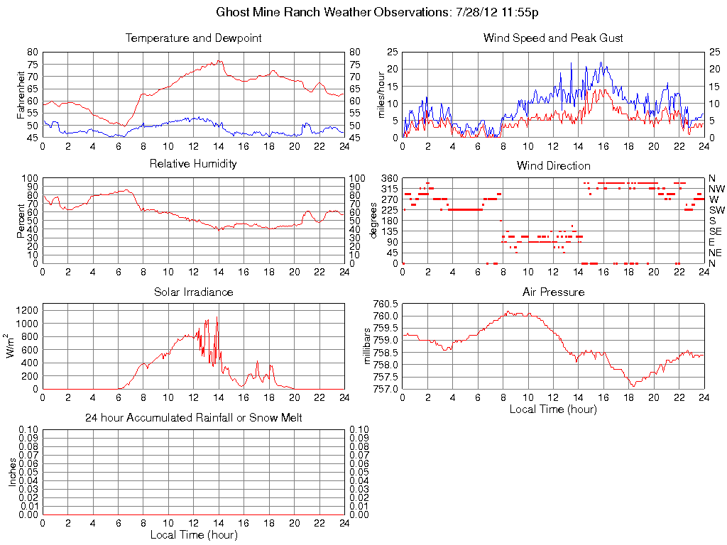Solar Flux (W/m2) 0 0 @ 00:05 1100 @ 13:50 214