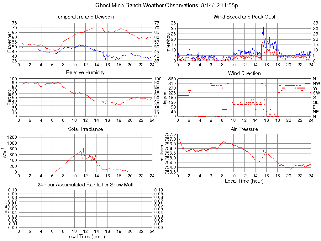 Temperature (F) 57.9 45.9 @ 06:25 70.7 @ 13:50 59.7
