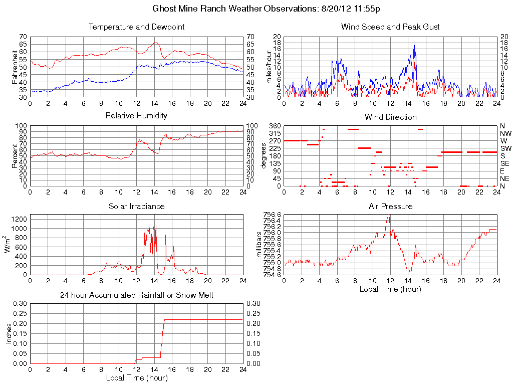 Temperature (F) 49.4 49.1 @ 23:45 66.4 @ 14:00 57.3