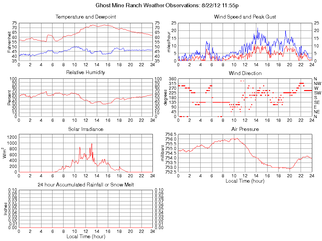 Temperature (F) 61.7 55.3 @ 04:50 73.1 @ 13:15 64.3