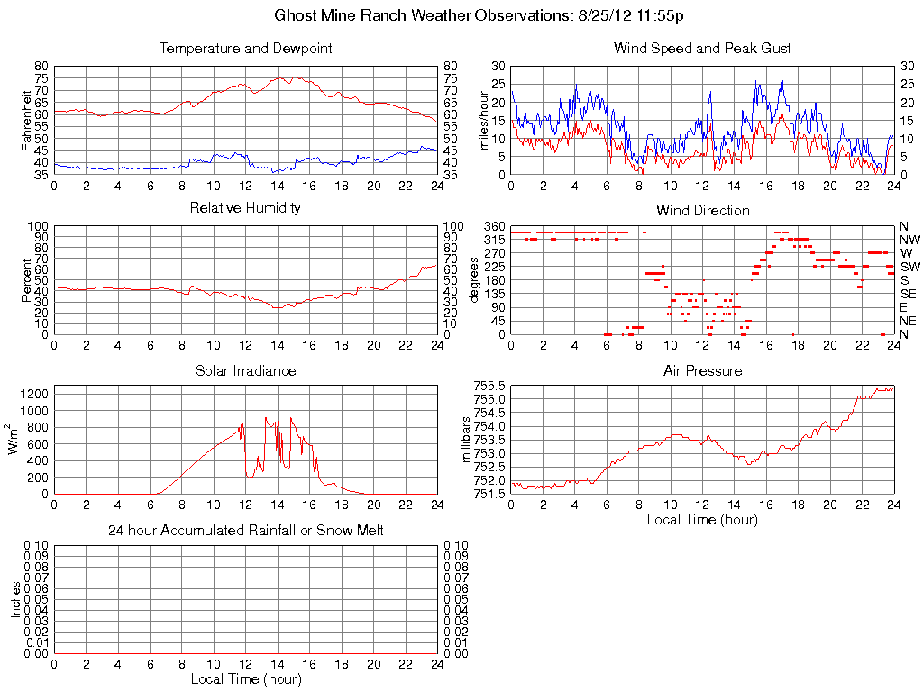 Temperature (F) 57.1 57.1 @ 23:55 75.7 @ 15:05 65.6