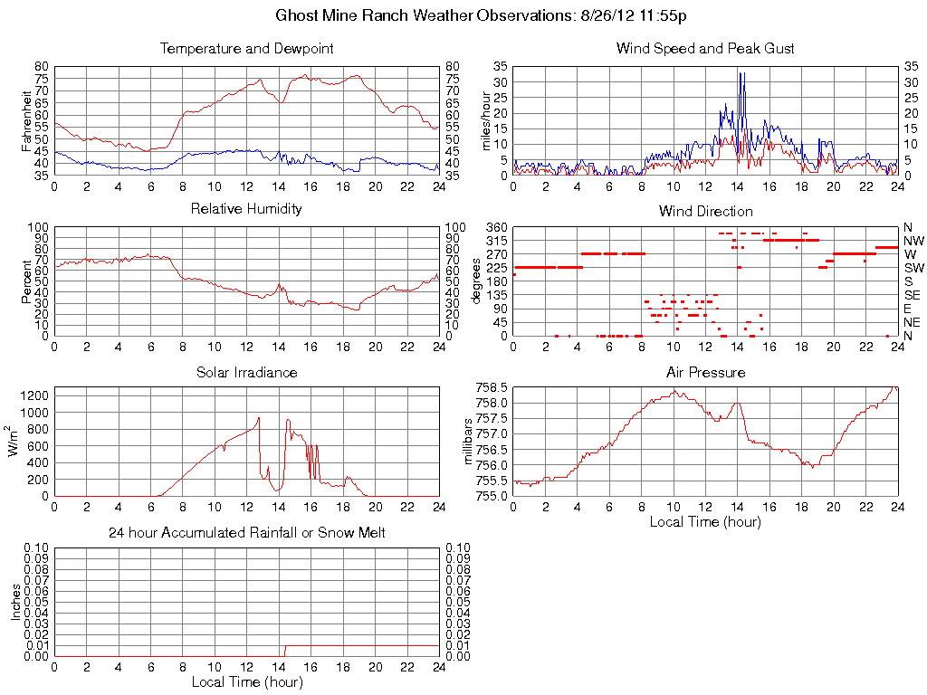 Temperature (F) 55.1 45.0 @ 05:45 76.7 @ 15:35 61.9