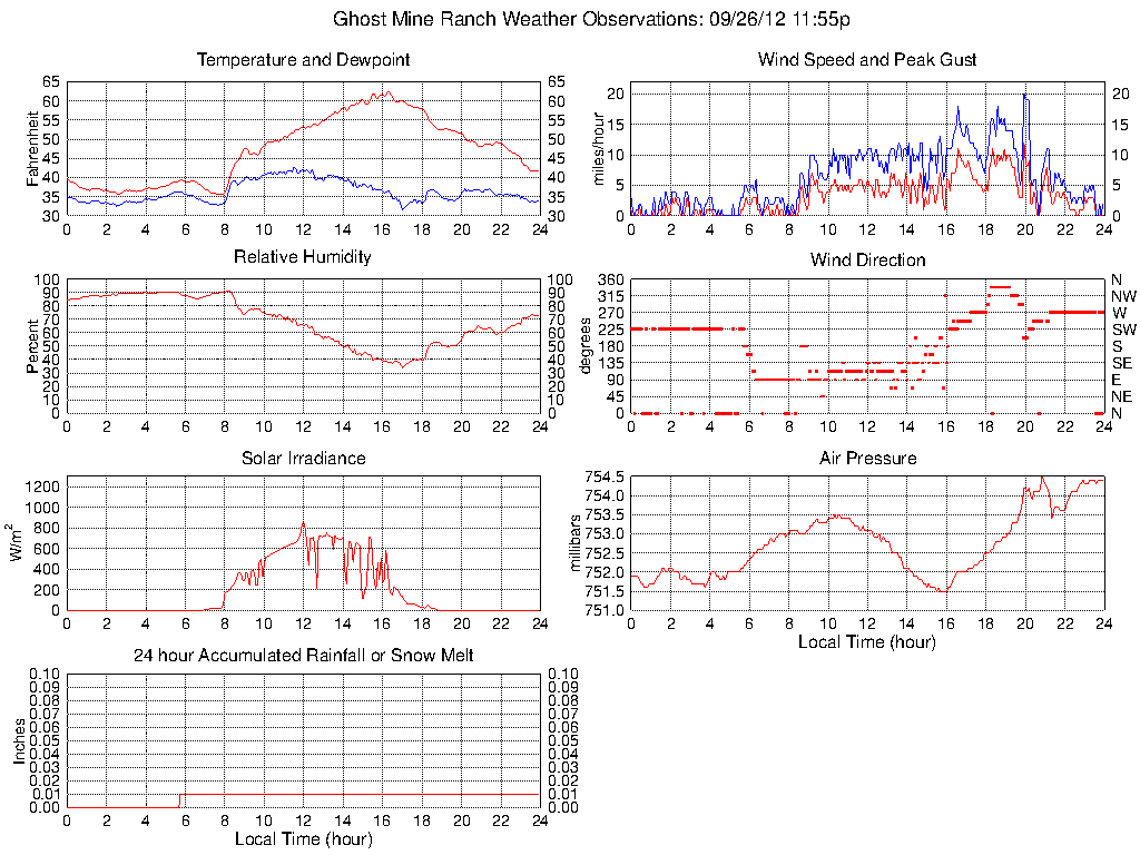 Temperature (F) 41.9 35.6 @ 07:40 62.4 @ 16:15 47.2