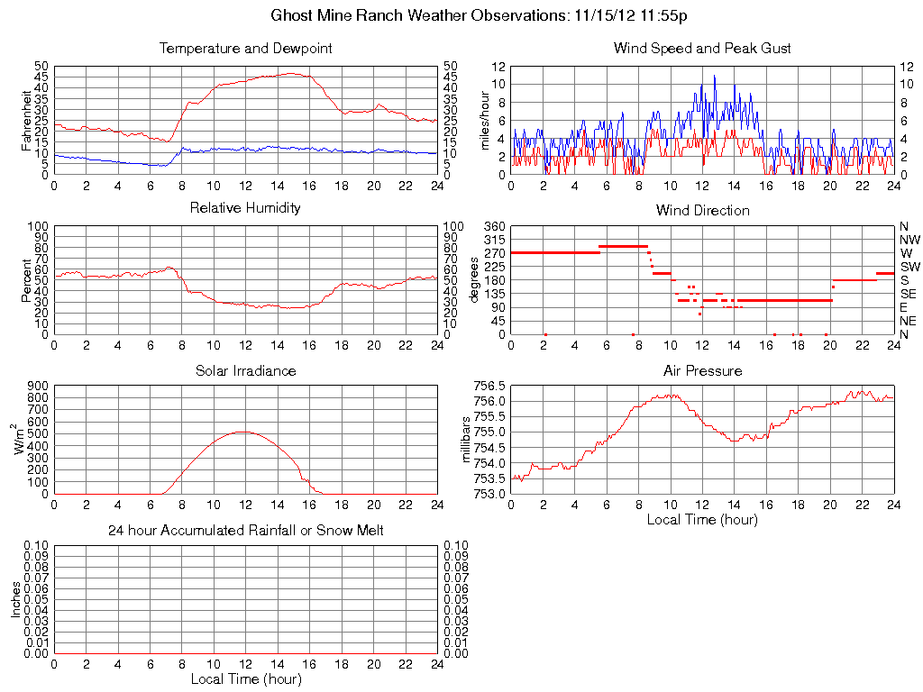 Solar Flux (W/m2) 0 0 @ 00:05 516 @ 11:55 132