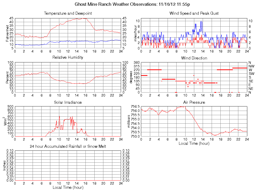 Temperature (F) 24.8 18.9 @ 05:25 44.9 @ 15:15 30.5