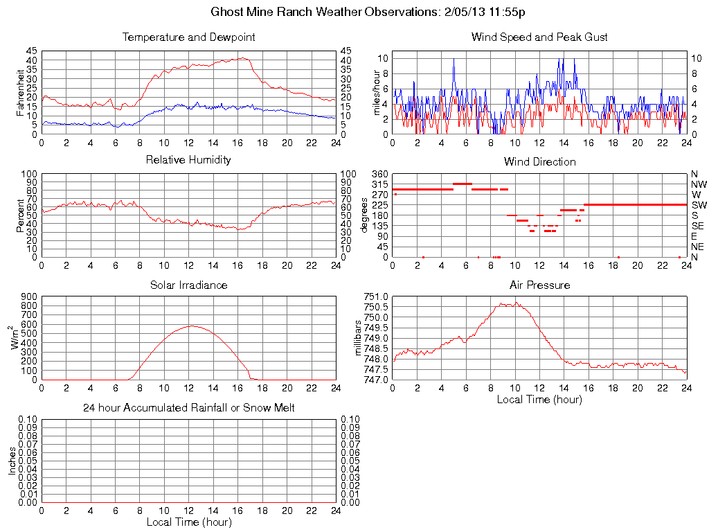 Temperature (F) 18.3 13.2 @ 06:25 41.2 @ 16:25 25.8