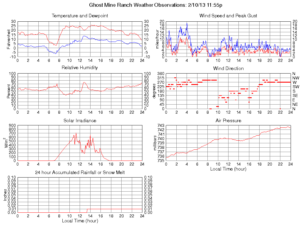 Dewpoint (F) 2.6 -6.6 @ 07:15 13.7 @ 12:50 4.9