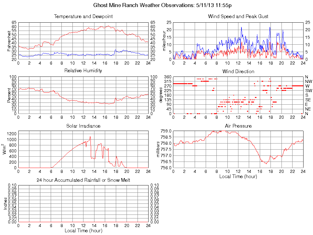 Temperature (F) 41.5 32.3 @ 01:50 61.0 @ 16:35 48.2