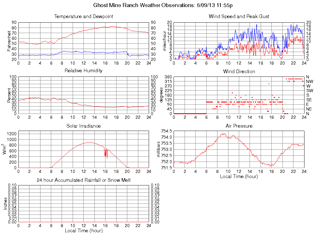 Temperature (F) 68.7 48.6 @ 03:00 83.1 @ 17:25 67.5