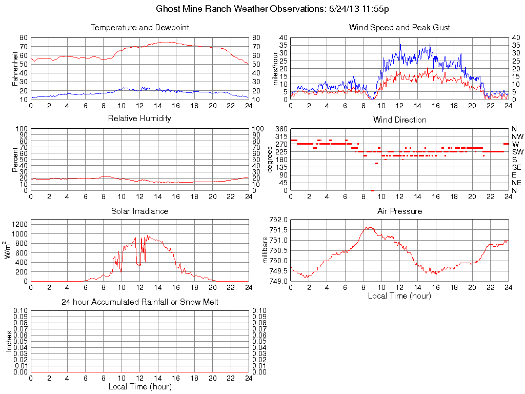 Solar Flux (W/m2) 0 0 @ 00:05 973 @ 12:50 231