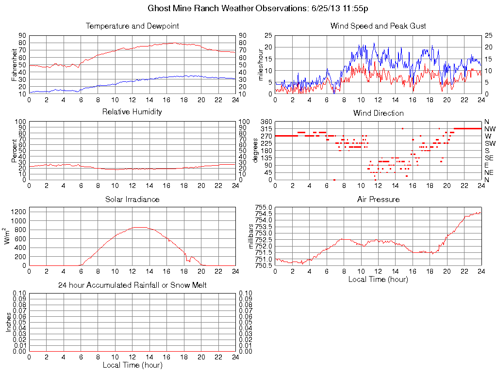 Temperature (F) 67.0 46.0 @ 02:25 80.0 @ 16:50 65.8