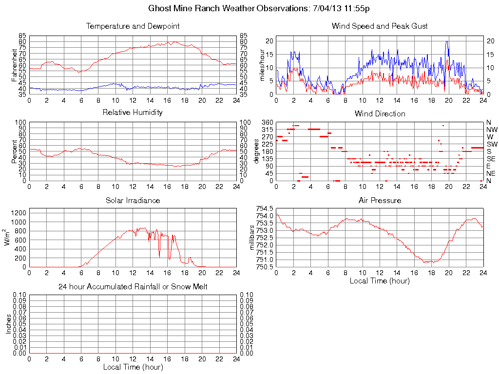 Temperature (F) 61.2 53.9 @ 05:40 80.3 @ 16:55 67.3
