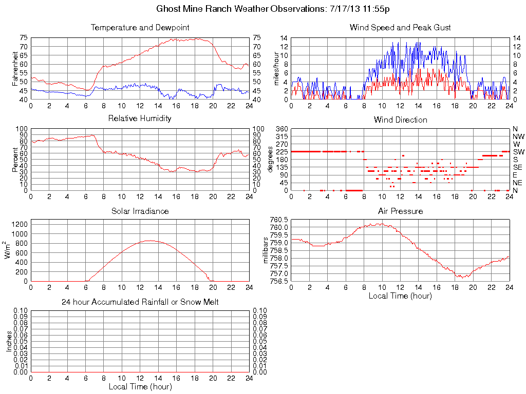 Temperature (F) 58.9 45.4 @ 06:00 74.5 @ 18:05 60.9