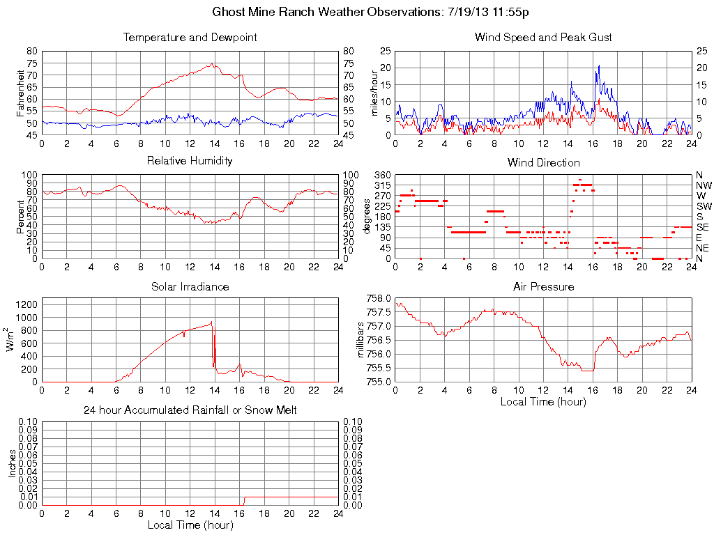 Temperature (F) 60.2 53.1 @ 06:05 75.0 @ 13:45 62.2