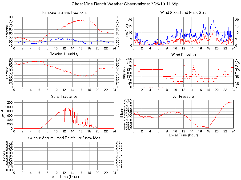 Temperature (F) 57.5 50.1 @ 05:25 76.6 @ 16:30 62.9