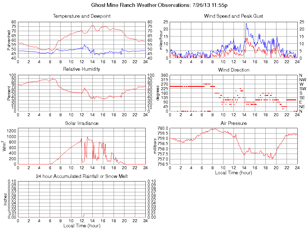 Temperature (F) 58.2 48.4 @ 06:25 76.3 @ 14:05 62.7