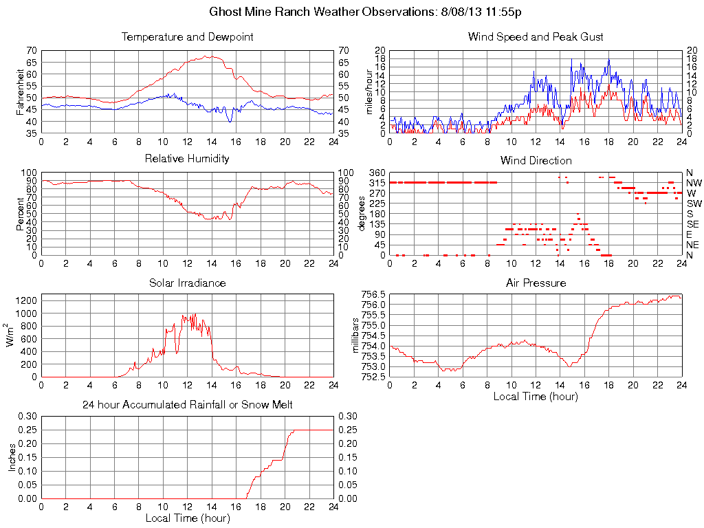 Temperature (F) 51.3 48.0 @ 05:35 67.8 @ 13:25 54.5