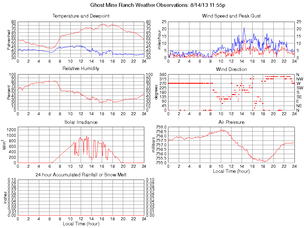 Temperature (F) 55.6 43.1 @ 06:20 76.8 @ 16:15 61.5
